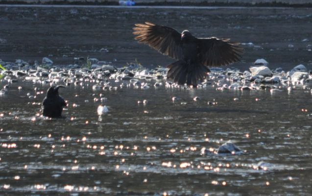 「愉快な鳥だね。ボクも生まれ変わったら鴨川のカラスになりたいよ」